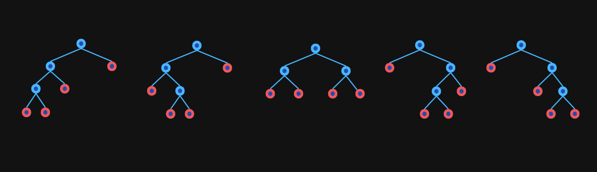 It's also equal to the number of full binary trees with leaves. The following image shows the binary trees with leaves: